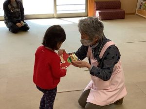 最後に園長先生から修了証とごほうびを頂きました🍎
